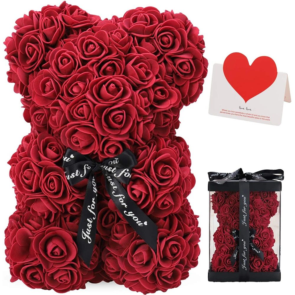 handmade : Our teddy bear is hand-made with crystal clear artificial roses. It is very light and looks romantic and charming throughout; it is very suitable for giving to your girlfriend or parents; representing With your highest sincerity.