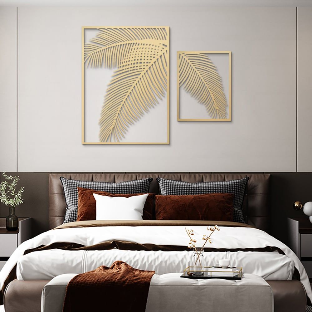Home > 2 Pieces Metal Wall Decor Rectangular Palm Leaf Home Art Set in Gold for Living Room