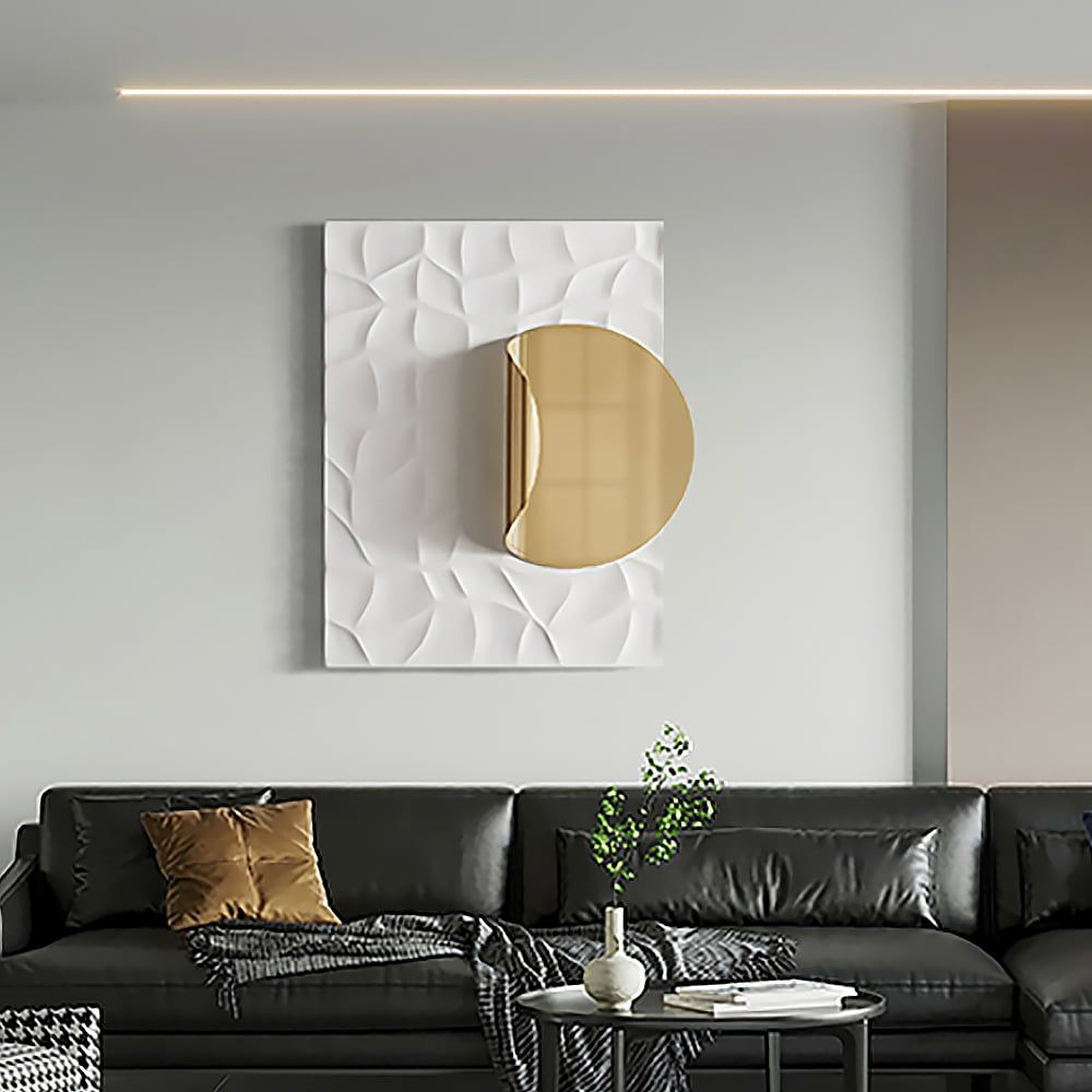 1.With its bold geometric form, textured white base, and golden arc, this piece creates a stunning focal point in any modern space.