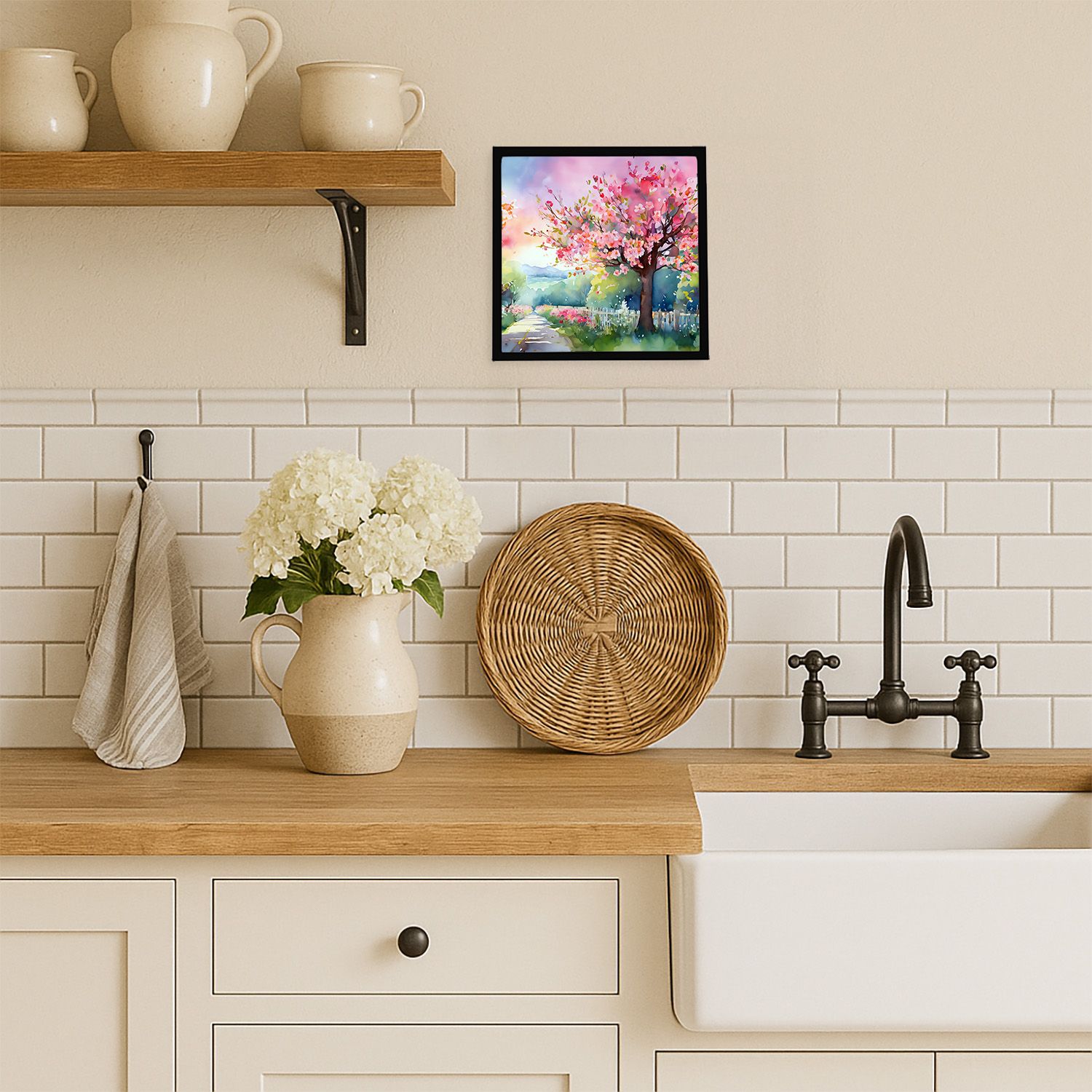 Michigan Apple Blossoms in Watercolor Framed Metal Print Bathroom, Kitchen, Office, Home Decor Wall Art Ready to Hang, Square, 8X8