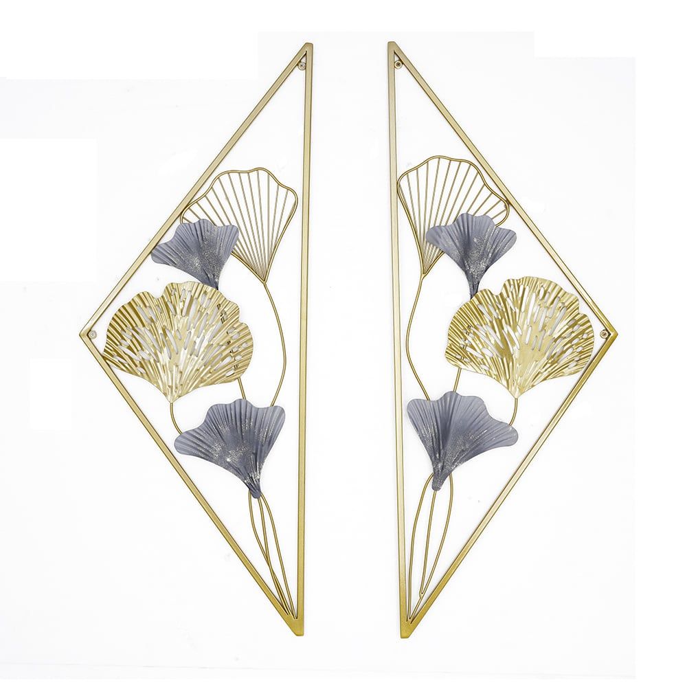 Home > 13.4"W x 35.4"H 2 Pieces Metal Triangular Wall Decor Hollow-out Ginkgo Leaves Floral Art